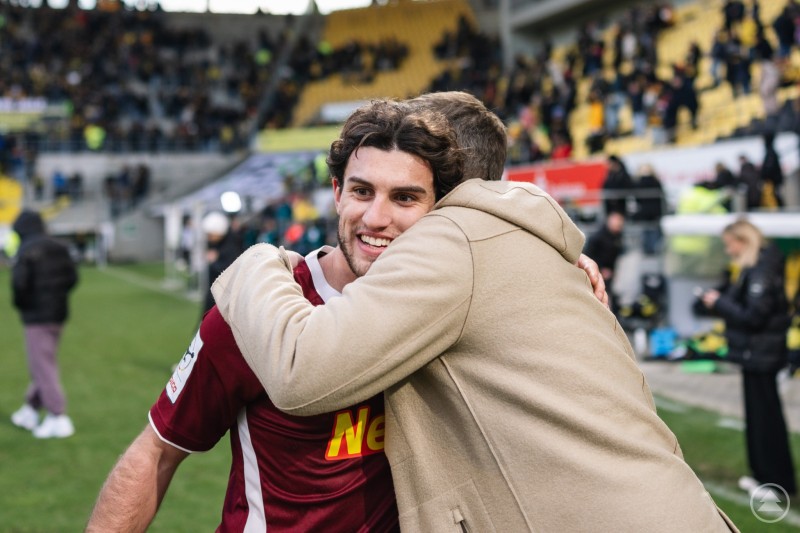 Nach der Halbzeit mussten wir nochmal einen brenzlige Situation überstehen, als Leo Mätzler auf der Linie klärt. Danach machen wir das 2:0, aber ich hätte mir gewünscht, dass wir es noch klarer spielen und dem Gegner nicht so viele Räume und Konter geben. Da hatten wir etwas Glück, weil wenn der Anschlusstreffer fällt, hätte es nochmal richtig eng werden können. Trotzdem ein großes Kompliment an die Mannschaft, denn es ist nicht einfach hier zu bestehen.