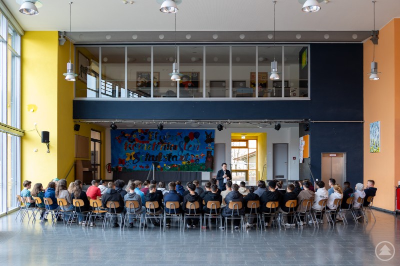 In der Aula der Schule versammelten sich die Schülerinnen und Schüler der Klasse M10, um dem Stadtoberhaupt ihre Fragen, Wünsche und auch Sorgen mitzuteilen. So konnten sie sich aktiv in den Dialog einbringen und ihre Anliegen persönlich adressieren.