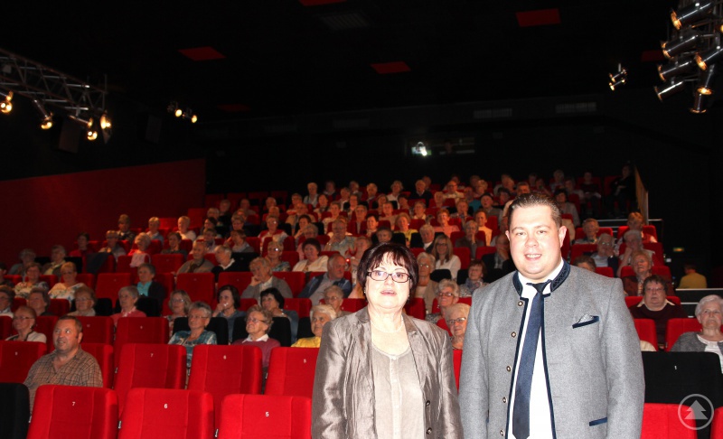 Seniorenbeauftragte Christine Kreuzer und Landrat Michael Adam bei der Begrüßung im Kino