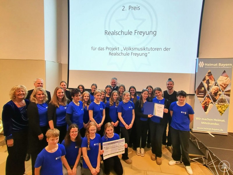 Die Volksmusiktutoren der Realschule Freyung wurden mit dem zweiten Preis beim Wettbewerb „Jugend macht Heimat!“ des Bayerischen Landesvereins für Heimatpflege ausgezeichnet. Das Projekt, das 2021 von Lehrerin Petra Fruth ins Leben gerufen wurde, vermittelt Kindern und Jugendlichen die Traditionen der bayerischen Volksmusik und Tänze. Im Rahmen des Wahlfachs lernen die Schülerinnen und Schüler nicht nur Lieder und Tänze, sondern erleben auch durch Aufführungen und Kurse die Vielseitigkeit regionaler Volksmusik.