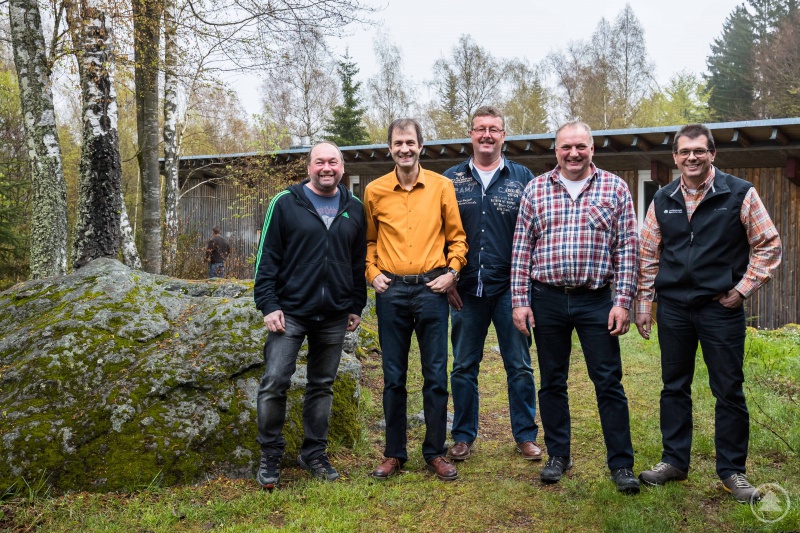 Die bei der Personalversammlung geehrten Mitarbeiter Kurt Moser (links), Max Kufner (Mitte) und Martin Degenhart (2.v.r.) mit Personalratsvorsitzendem Hans Höcker (rechts) und stellvertretendem Nationalparkleiter Jörg Müller.