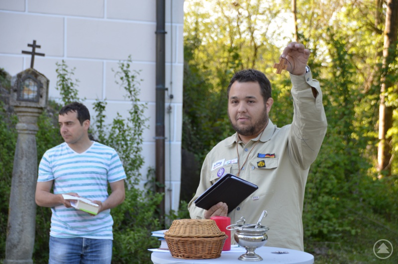 Alle Gäste konnten dem Fahrzeug und den Reisenden ihre guten Wünsche mit auf den Weg geben. Schließlich wurden noch eine Christopherus-Plakette und ein in Altötting geweihtes Kreuz gesegnet und im Bus platziert. Musikalisch umrahmt wurde die Feier von der KLJB St. Oswald.