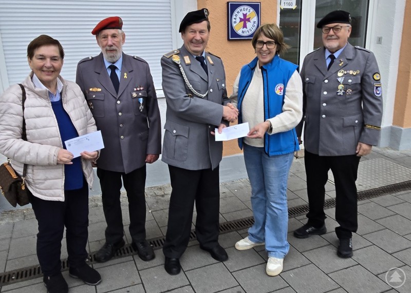 Der Soldaten- und Kameradschaftsbund Passau gehört seit Jahrzehnten zu den verlässlichsten Partnern der Caritas. Auch in diesem Jahr ließ es sich die Vorstandschaft nicht nehmen, persönlich vorbeizuschauen. Am Montag, 15. Dezember, überreichte der SKB eine Spende in Höhe von 750 Euro für die Bahnhofsmission und das Frauenhaus.