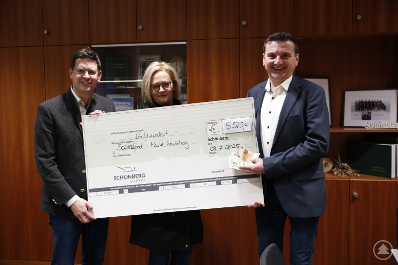 Eine Spende in Höhe von 550 Euro überreichte Christian Brunnbauer vom TSV Schönberg an Bürgermeister Martin Pichler. Das Geld kommt dem Sozialfonds der Marktgemeinde zugute, aus dem Menschen in akuten Notlagen unbürokratisch unterstützt werden.