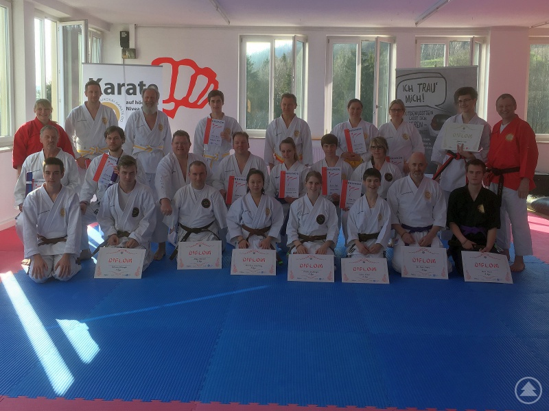 Die Prüfungen zum weiß-gelben Gurt bestanden Thomas Mitterndorfer, Alois Mitterndorfer und Marian Bauer. Den gelben Gurt tragen jetzt Reinhold Windorfer, Melanie Stockbauer und Melanie Schäfer. Stefan Biebl trägt nun den gelb-orangen Gurt und Julian Reiß den Gurt in Orange. Die Prüfung zum blau-violetten Gürtel haben Carmen Eder, Ulrike Eder, Herbert Eder bestanden. Den violetten Gürtel dürfen nun Julian Hofbauer, Johannes Jung, Sebastian Jung, Josef Schweighofer, Michaela Breit, Martin Riedl und Johann Kelch tragen. Zum braunen Gürtel haben zudem Lukas Gruber, Marco Maier, Dr. Axel Flohe (jeweils erster Braungurt), Stefan Obermeier (zweiter Braungurt), Korbinian Steininger, Linda Vuong und Christine Dachsberger (jeweils dritter Braungurt) bestanden.