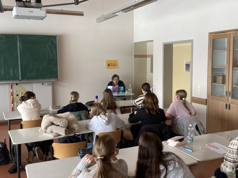 Autor Norbert Schimmelpfennig liest am Vorlesetag am Gymnasium Freyung aus seinem Buch vor.