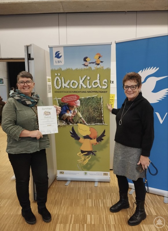 Der Landesbund für Vogelschutz (LBV) würdigt mit Unterstützung des Bayerischen Umweltministeriums seit 15 Jahren Kindertageseinrichtungen, die Projekte im Sinne des Bayerischen Bildungs- und Erziehungsplans umsetzen. Die Urkunde wurde Birgit Bauer von Staatsminister Thorsten Glauber überreicht. Die Auszeichnungsveranstaltung bot zusätzlich Workshops und einen inspirierenden Vortrag zum Thema Kita-Garten.