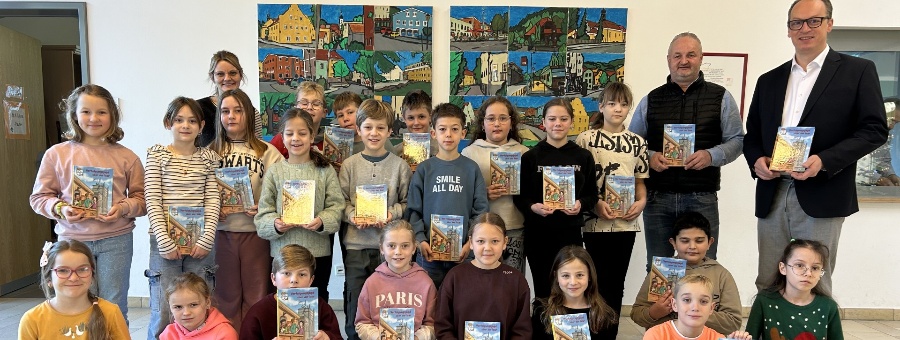 Was viele nicht wissen: Für Schulen gibt es Klassensätze kostenlos. Einen solchen Satz hat MdL Martin Behringer nun persönlich nach Grafenau gebracht und an die Klasse 4a der Reinhold-Koeppel-Grundschule übergeben.