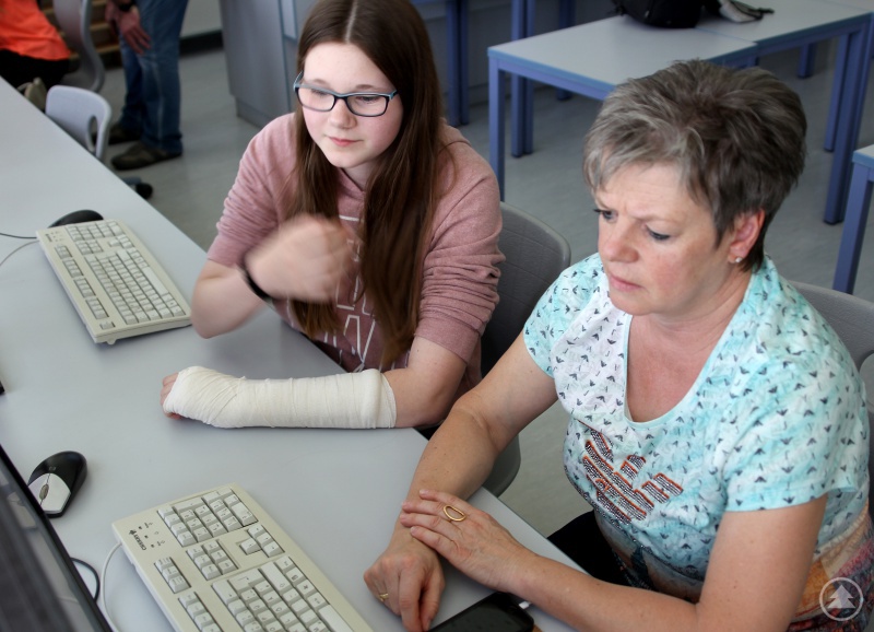 „Auch wenn man regelmäßig am Computer arbeitet, so gibt es immer wieder etwas, was man dazu lernen kann“, sagte sie und ließ sich vor allem Bildbearbeitung von einer Schülerin zeigen. Überhaupt hatten sich die Senioren gut vorbereitet. Jeder kam mit spezifischen Fragen und Problemen, vom E-Mail-Versand bis hin zum Ebayverkauf, die Schüler konnten immer weiterhelfen. Und wenn sie doch einmal unsicher waren, dann war noch IT-Lehrer Bernhard Mühlbauer greifbar. Auch er stand den Kursteilnehmern mit Rat und Tat zur Seite. Als Dozenten waren die Mädchen der Klasse 8 c im Einsatz, ihnen dankte Christine Kreuzer am Ende besonders. „Ihr habt uns Senioren wirklich geholfen“, so ihr abschließendes Fazit.