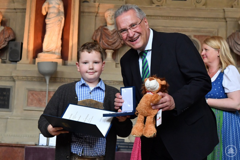 Eine besondere Ehre wurde am Mittwoch dem neunjährigen Marco Fuchs aus dem Landkreis Straubing-Bogen zuteil. In der Münchner Residenz wurde er als einer von 64 Personen in diesem Jahr mit der Christophorus-Medaille aus den Händen von Bayerns Innenminister Joachim Herrmann ausgezeichnet und erhielt eine öffentliche Belobigung. Mit der Christophorus-Medaille, die erstmals 1983 vergeben wurde, sind bislang 1.617 Personen geehrt worden.