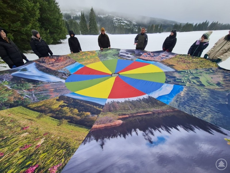 Dass Horská Kvilda auf über 1000 Metern Höhe liegt, machte sich deutlich bemerkbar: Tiefschnee, frostige Temperaturen und eine traumhafte Winterlandschaft bildeten die Kulisse für ein Programm, das größtenteils draußen stattfand. Umweltpädagogen des Nationalparks Šumava gestalteten abwechslungsreiche und pädagogisch wertvolle Programmpunkte. Bei einer Schneeschuhwanderung durch unberührten Tiefschnee wurde das Gelände erkundet – eine sportliche Herausforderung, die Teamgeist erforderte und zusammenschweißte.