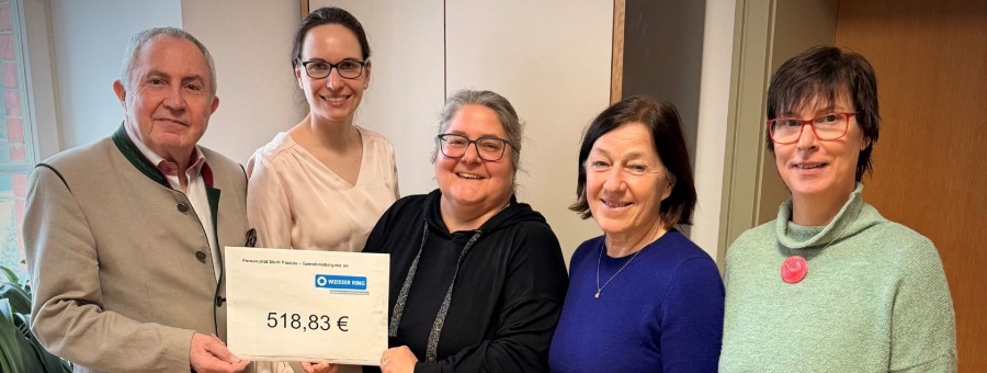 Der Personalrat der Stadt Passau hat der Außenstelle Passau des Weißen Rings eine Spende in Höhe von 518,83 Euro übergeben. Das Geld stammt aus dem Erlös eines gut besuchten Schafkopfturniers, das von Mitarbeitenden der Stadt Passau veranstaltet wurde. Ziel des jährlichen Turniers ist es, mit einem Teil des Startgeldes soziale Projekte zu unterstützen.