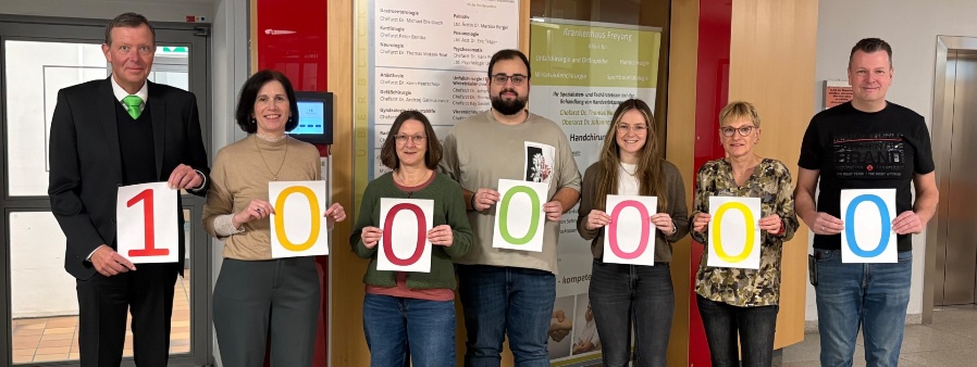 Verena Krenn, Mitarbeiterin der Pforte am Krankenhaus Freyung, hat mit ihrer Eingabe am Tablet die Eine Million Stufen geknackt und als kleinen Preis einen Gutschein erhalten.