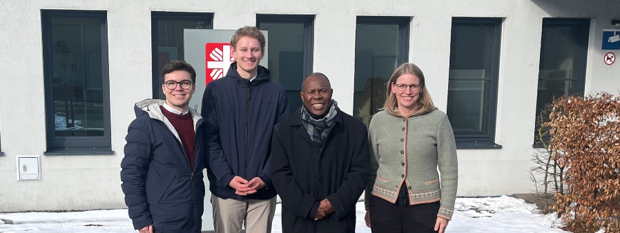 V.li. Niklas Klingel RCDS München, Maximilian Becker RCDS Passau, Weihbischof Vincent Frederick Mwakhwawa Erzbistum Lilongwe Malawi und Agnes Stefenelli Caritas beim Besuch im Konradinum in Passau.