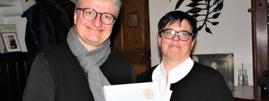 Die Urkunde zum mit 1000 Euro dotierten Musik-Kulturpreis des Rotary-Clubs Passau-Dreiflüssestadt konnte Christiane Öttl (links) in der Heilig Geist Stiftschänke von Club-Präsidentin Caroline Schober (rechts) entgegennehmen. Diese lobte das breit gefächerte musikalische und kulturelle Wirken der Preisträgerin.