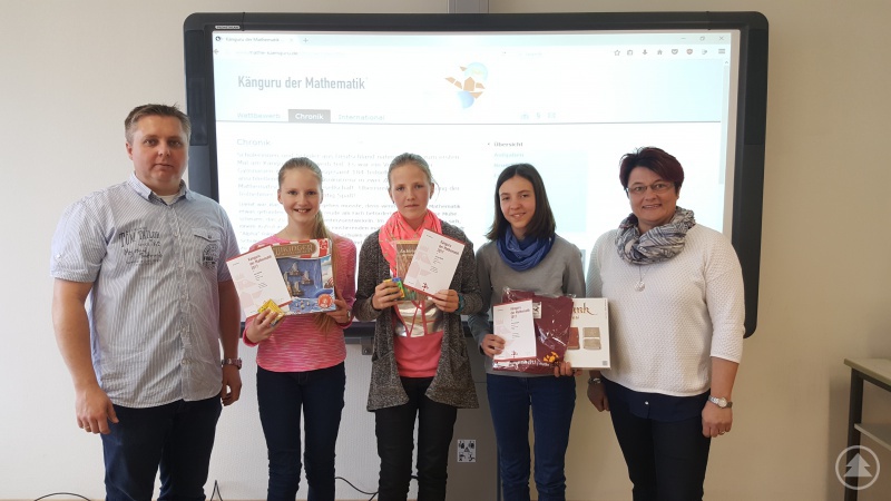 Am Gymnasium Freyung gingen die ersten drei Plätze dieses Mal an Lucia Schreiner (re), Anna Sammer (li) und Laureen Blöchl (m). Neben Urkunden und einem kleinen Spiel, das jeder Teilnehmer erhält, bekamen die Mädchen Sachpreise und ein T-Shirt. Besonders stolz über die herausragenden Leistungen waren Herr Stefan Christoph (Mathematiklehrer der drei Gewinnerinnen) und Frau Elke Unrecht (verantwortlich für die Durchführung des Tests an der Schule).