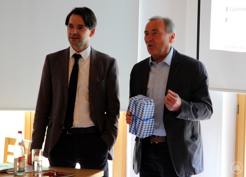 Referent Dr. Andreas Gaß (li.) und Bürgermeister Hermann Brandl. Brandl bedankte sich mit einem Geschenk für seinen Vortrag.