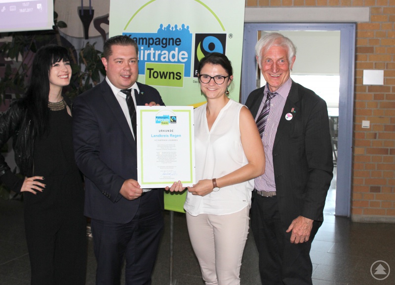 Zwiesel. „Wir positionieren uns als weltoffener Landkreis und wollen unserer Vorbildfunktion gerecht werden“, sagte Landrat Michael Adam bei der Sitzung des Kreistages des Landkreises Regen am Mittwoch, 19. Juli, in Zwiesel. Die Kreisräte hatten sich im Gymnasium zur traditionellen Grenzlandfestversammlung getroffen. Bereits der erste Tagesordnungspunkt war dabei ein Punkt zur Freude: Als erster niederbayerischer Landkreis darf sich der Landkreis Regen nun offiziell Fairtrade Landkreis nennen.