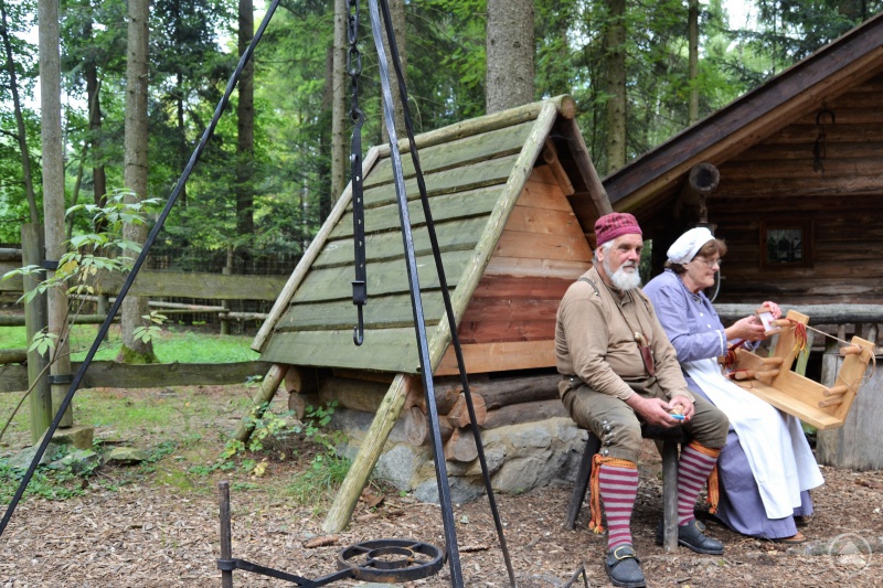 Die Siedler sind fleißige Handwerker. Hilde fertigt kleine Kunstwerke an ihrem Webstuhl. Richard und Hans beschäftigen sich vor allem mit den Dingen des täglichen Bedarfs. Sie schreinern Stühle, Tische und Bänke, betreiben eine Seilerei mit historischem Werkzeug, nähen Taschen aus Leder, schmieden Messer, stellen ihre eigenen Kerzen her. Und nach getaner Arbeit wird gekocht, natürlich über dem offenen Feuer oder im Lehmbackofen: Schmandfleckerl würden darin besonders lecker werden, berichtet Richard.