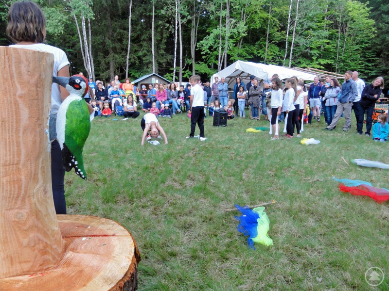 Als Erinnerung an das diesjährige Spechtfest wurde ein aus Holz geschnitzter Grünspecht enthüllt, der in Zusammenarbeit mit der Caritas Spiegelau gestaltet wurde und nun auf der Waldwiese seinen festen Platz finden wird. Den krönenden Abschluss stellte die Waldzirkus-Gruppe des Nationalparks dar, die eine ideenreiche Inszenierung ganz unter dem Thema „Waldwildnis“ vorführte. Nach so einem rundum gelungenen Fest freuen sich schon alle Beteiligten auf nächstes Jahr, wenn es wieder heißt: „Ran an den Specht“.