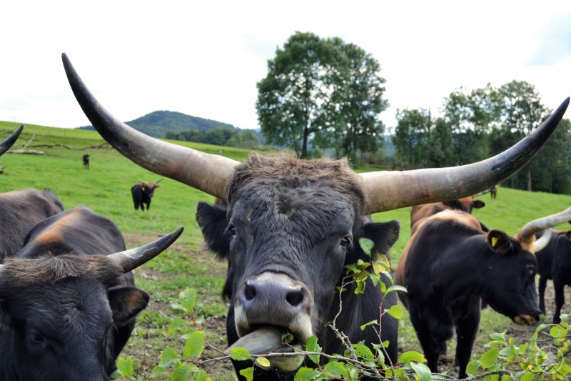 Einst waren sie ausgestorben, heute leisten Auerochsen einen wertvollen Beitrag bei der Beweidung von Renaturierungsflächen und einer extensiv betriebenen Viehwirtschaft. Bettina und Helmut Schmutzer züchten Auerochsen und vermarkten deren Fleisch direkt von ihrem Hof aus in der Nähe von Grainet.