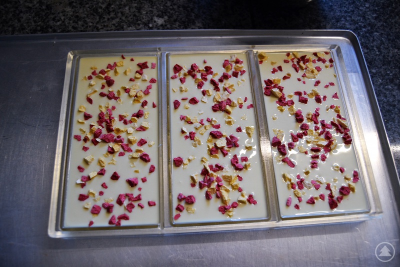 ... wie die Klassiker Vollmilch, Nuss oder auch Krokant, Kokos. Weitere Sorten sind beispielsweise Pfefferminz, Roter oder Grüner Pfeffer, Rosenblätter, Lemone, Erdbeer-Maracuja. Und dann für die wahren Schokoladen-Liebhaber: Edelbitter mit einem Kakaoanteil von 72 %.