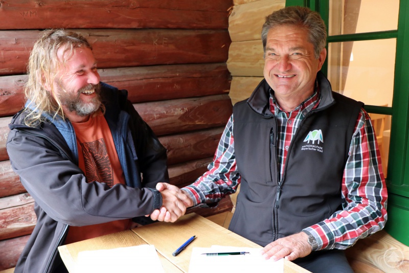 In der jüngst renovierten Racheldiensthütte unterzeichneten die Nationalparkleiter Pavel Hubený (links) und Franz Leibl die dritte gemeinsame Kooperationsvereinbarung.