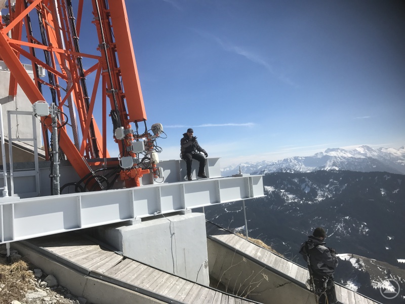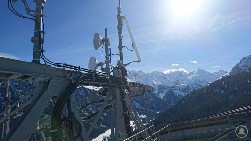 Mario Traxinger: Das ist, zugegebener Weise, manchmal ein kleines Abenteuer. Entweder wir nutzen die Gondelbahn wie am Nebelhorn oder aber auch einen Hubschrauber wie am Wendelstein. Oder auch per Ski-Doo. Hängt ganz von Ort, Jahreszeit und benötigtem Material ab. Der Durchmesser der Richtfunkantennen variiert ja von 15 cm bis zu drei Metern, die Masthöhen bewegen sich zwischen 10 und 300 Metern. Da braucht es dann natürlich auch viele Meter Kabel.