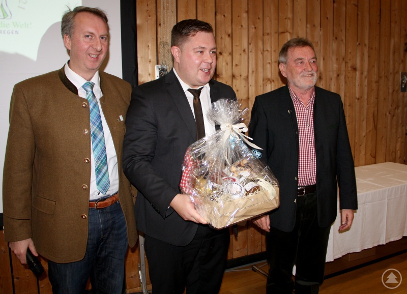 Zum Abschied bekam der Landrat noch ein kleines Geschenk. Der stellvertretende Landrat Helmut Plenk und der Agenda-Arbeitskreisvorsitzende Herbert Altmann überreichten einen Korb mit Schmankerln aus der Region.