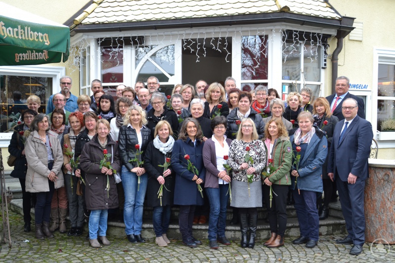 Im Rahmen eines gemeinsamen Frühstücks im Landhotel Koller in Ringelai wurden am vergangenen Freitag langjährige Mitarbeiter aus allen drei Standorten der Kliniken geehrt. Geladen waren zudem die im letzten Halbjahr in den Ruhestand eingetretenen Mitarbeiter. Sie wurden an diesem Tag offiziell verabschiedet. Neben der Geschäftsleitung der Kliniken, vertreten durch Geschäftsführer Helmut Denk, Ärztlichen Direktor Dr. Franz Schreiner, Personalleiterin Claudia Decker, Krankenhausdirektor Christian Hofbauer, Pflegedirektorin Nadja Naujok, dem Betriebsratsvorsitzenden Martin Blöchl, der stellv. Betriebsratsvorsitzenden Jutta Garhammer gratulierte stv. Aufsichtsratsvorsitzender Max Niedermeier. In seiner Ansprache hob er die insgesamt 1475 Dienstjahre hervor, die an diesem Tag geehrt wurden. Er dankte den Anwesenden für ihre Betriebstreue und ihr langjähriges Engagement. Als einer der größten Arbeitgeber in der Region bieten die Kliniken nach seiner Ansicht neben der Sicherheit eines festen Arbeitsplatzes vor allem auch eine sehr gute Qualität in der medizinischen Versorgung der Patienten.