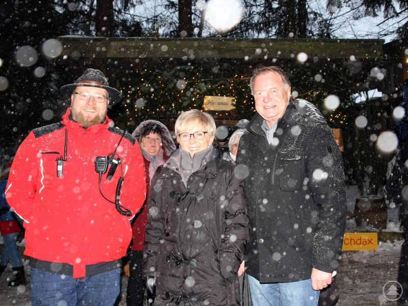 Schweinhütt. Bei dichtem Schneegestöber besuchten am Sonntagnachmittag, 10. Dezember, Landrätin Rita Röhrl und ihr Stellvertreter Willi Killinger die Waldweihnacht in Schweinhütt. Dabei konnten die beiden Lokalpolitiker erleben, wie gut die Veranstaltung geplant wurde. Trotz großem Besucherandrangs lief der Betrieb reibungslos.