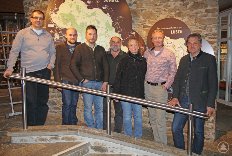 Die anwesenden Geehrten Christoph Wagner (ab 2.v.l.), Tobias Rankl, Johann Hackl, Katja Traxinger-Eder und Lothar Mies mit Personalratsvorsitzendem Hans Höcker (links) und Nationalparkleiter Franz Leibl.