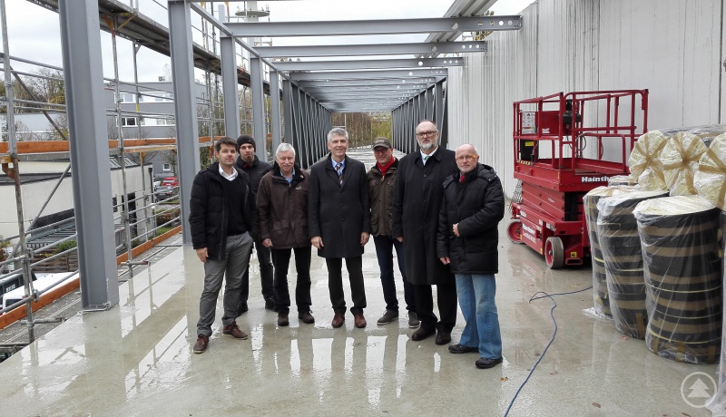 Oberbürgermeister Jürgen Dupper hat sich u.a. mit den Verantwortlichen der Leichtathletikabteilung des 1. FC Passau und der Leichtathletikgemeinschaft Passau ein Bild vom aktuellen Baufortschritt gemacht.