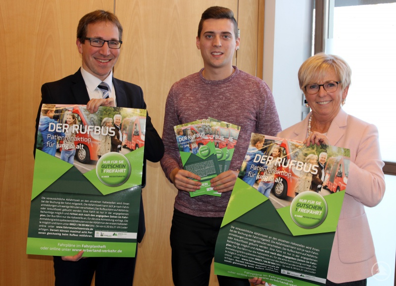 Krankenhausvorstand Christian Schmitz (li.), der für das Projekt zuständige ÖPNV-Sachbearbeiter Johann Brunner und Landrätin Rita Röhrl mit Werbematerial zur Aktion.Krankenhausvorstand Christian Schmitz (li.), der für das Projekt zuständige ÖPNV-Sachbearbeiter Johann Brunner und Landrätin Rita Röhrl mit Werbematerial zur Aktion.