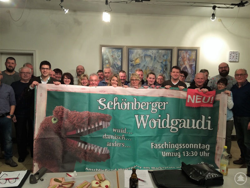Vor drei Jahren räumten die Initiatoren gründlich auf mit allem, was gemeinhin mit Fasching verbunden wird. Sie schmissen hemmungslos alte Bräuche vom Bayerischen Wald bis Südtirol in einen Topf und rührten kräftig um. Sie bedienten sich ohne Hemmung bei der niederbayerischen Bauernhochzeit ebenso wie beim Perchten- oder Haberfeldtreiben. Mit viel Rauch und Dampf wurde die Schönberger Woidgaudi geboren.