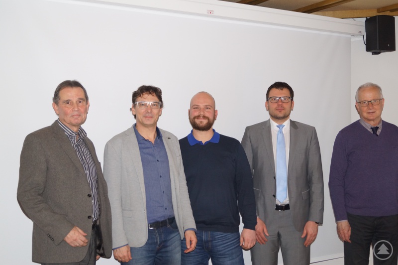 Regionalmanager Schuster (2. v. l.) bedankt sich bei den neuen Berufswahl-SIEGEL-Juroren (von links): Bernd Bachhuber, Florian Reihofer, Otmar Knaus und Hans Haugeneder.