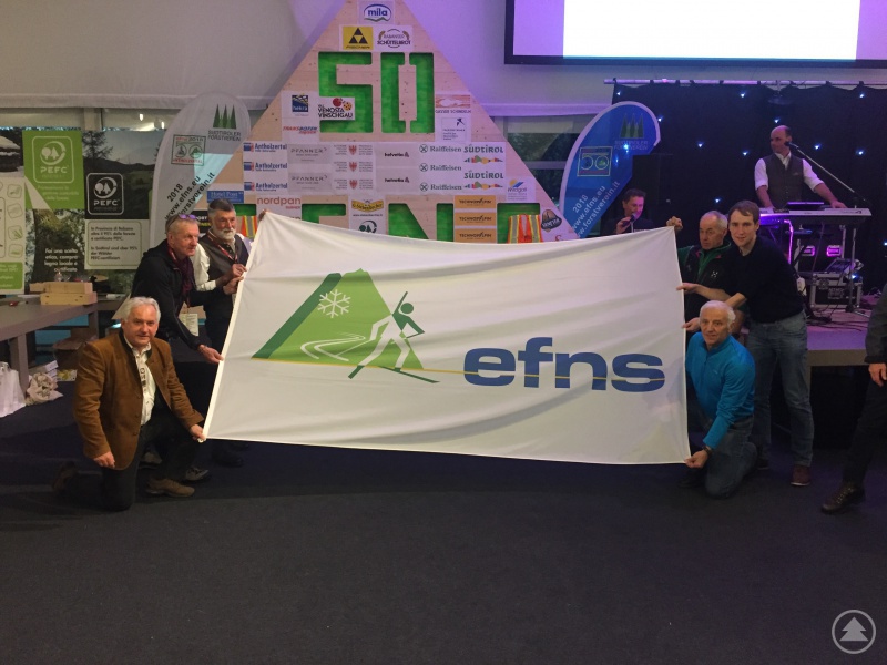 Der „Bayerische Verein für Forstlichen Skilauf“ unter Leitung von Mannschaftsführer Hermann Kastl nimmt bereits seit Jahrzehnten an den Skiwettkämpfen teil. Sein Wunsch, die EFNS einmal ins Hohenzollern Skistadion am Großen Arbersee zu holen, fand beim Organisationskomitee (OK) Bayerischer Wald mit Herbert Unnasch an der Spitze großes Interesse - und so wurde vor drei Jahren im Rahmen der Skiwettkämpfe in der Lenzer Heide erfolgreich eine Bewerbung beim EFNS-Komitee eingereicht. Um daran zu erinnern, dass 2019 gar nicht mehr so weit ist, rührte EFNS-Präsident Gunnar Olofsson bei der Abschlussfeier in Antholz kräftig die Werbetrommel für das ARBERLAND.