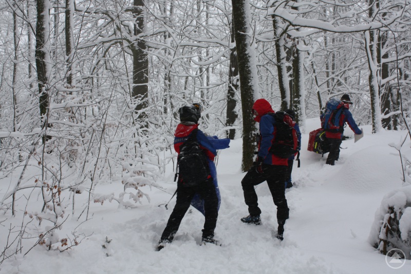 Da eine Handypeilung durch den Einsatzleiter fehlgeschlagen war, teilte der Einsatzleiter die Kameraden Mathias Simmet, Peter Mixa, Siegfried Stockbauer, Christian Mies und Jo Höcker zusammen mit den Anwärtern Manuel Weber-Stockbauer, Maria Wittensöllner, Alexander Ehrenböck sowie den „ganz Neuen“ Christian Joachimstaller und Holger Meininger in drei Suchtrupps und eine Motorschlittenstreife ein; die mit Schneeschuhen ausgerüsteten Bergretter und die Mannschaft auf dem Motorschlitten sollten zunächst die verschiedenen, der jeweiligen Gruppe zugeteilten Wander- und Forstwege am Frauenberg nach der Vermissten absuchen.