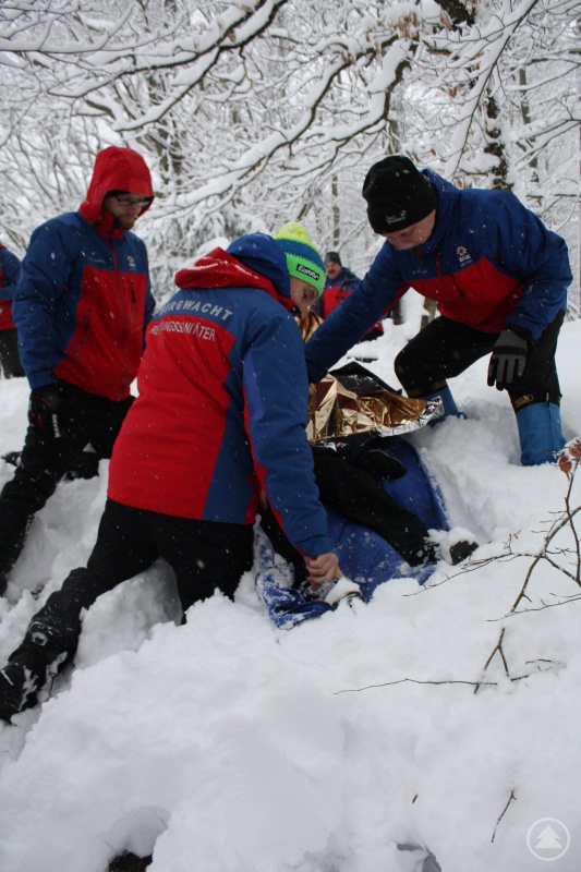 Und Holger Meininger, ebenfalls erst seit einer Woche Anwärter, meinte: „Es war spannend, den Ablauf einer Personensuche mitzuerleben. Interessant war auch, nach dem Auffinden der gesuchten Person zu erfahren, wie man vorgehen muss bei der Bergung und Versorgung des "Verletzten"; und es ist gar nicht so einfach wie man sich das vorher gedacht hatte, mit einem Motorschlitten samt Nachläufer durch unwegsames Waldgelände zu fahren.“
