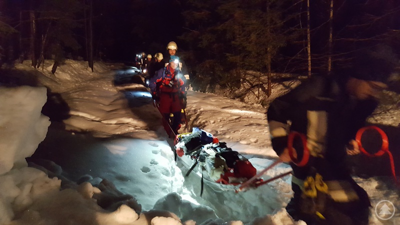 Der Einsatzleiter alarmierte daraufhin die Wolfsteiner Kollegen. Zusammen mit den Grafenauern machten sich neun Bergwachtmänner von Sagwasser aus auf den Weg, während Strössenreuther weiter die Spuren am Bach entlang verfolgte. Da der Weg von Sagwasser aus ebenfalls durch zum Teil eineinhalb Meter tiefen Schnee führte, was durch die mitgeführte Rettungsausrüstung noch anstrengender war, alarmierte Stockbauer die Feuerwehren Neuschönau und Altschönau nach, um um Unterstützung beim Abtransport zu bitten.