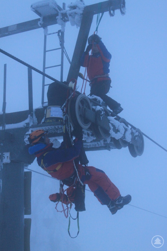 Um 16.oo Uhr trafen sich Grafenauer und Wolfsteiner Bergwachtler erneut, um eine Seilbahnevakuierung zu trainieren.