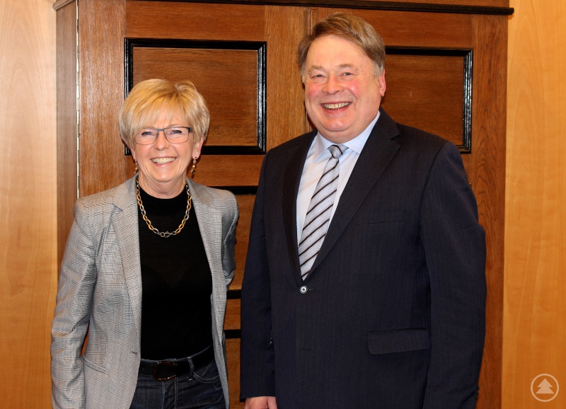 Staatsminister Helmut Brunner und Landrätin Rita Röhrl in ihrem Büro im Landratsamt Regen.