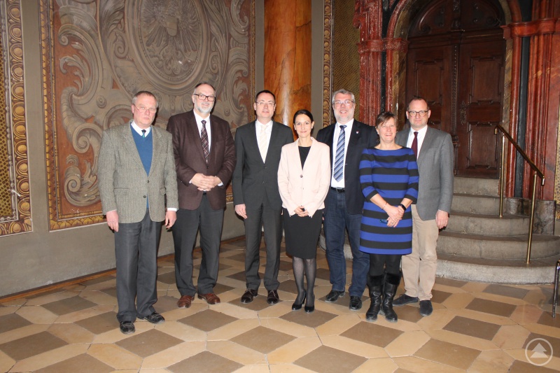 Oberbürgermeister Jürgen Dupper (2. von links) bei der Vorstellung des Vereins Deutsche Limes-Straße durch die Vorsitzenden Oberbürgermeister Thilo Rentschler (3. von links) und Oberbürgermeister Jürgen Schröppel (5. von links) sowie Geschäftsführerin Julia Datow-Ensling (4. von links). Ebenfalls im Bild sind Kulturreferent Dr. Bernhard Forster (von rechts), Pia Olligschläger, Leiterin der Dienststelle Passau Tourismus und Stadtmarketing, sowie Stadtarchäologe Dr. Jörg-Peter Niemeier.
