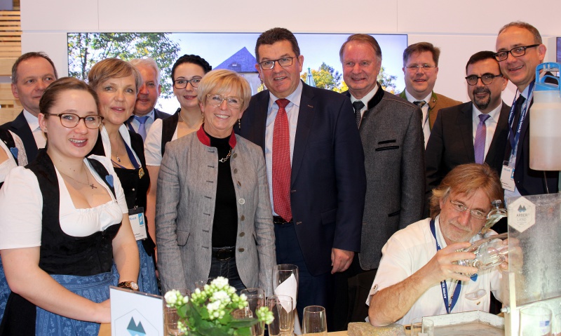 Franz Josef Pschierer (5.v.re.), Staatssekretär im bayerischen Wirtschaftsministerium, wurde am Arberland-Stand auf der ITB von der Landrätin Rita Röhrl (6.v.re.), ihrem Stellvertreter Willi Killinger (4.v.re.), dem Bodenmaiser Bürgermeister Joli Haller (3.v.re.) und dem TVO-Geschäftsführer Dr. Michael Braun (re.) begrüßt.