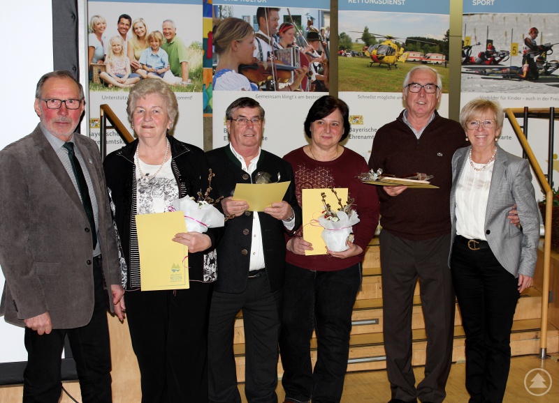 Elisabeth Hofbauer (Mitglied der KDFB-Vorstandschaft, Dekanatsvorsitzende), Traudl Jarolim (40-jährige Dienstzeit bei BRK Bereitschaft Regen), Karl Leidl (Mitglied in der Vorstandschaft des Heimat- u. Volkstrachtenvereins Teisnacher Woidschrazln als Beisitzer, seit 15 Jahren 2. Kassier), Hubert Raster (25 Jahre FFW Triefenried), Hans-Jürgen Richter (25 Jahre Dienstzeit FFW Regen);'