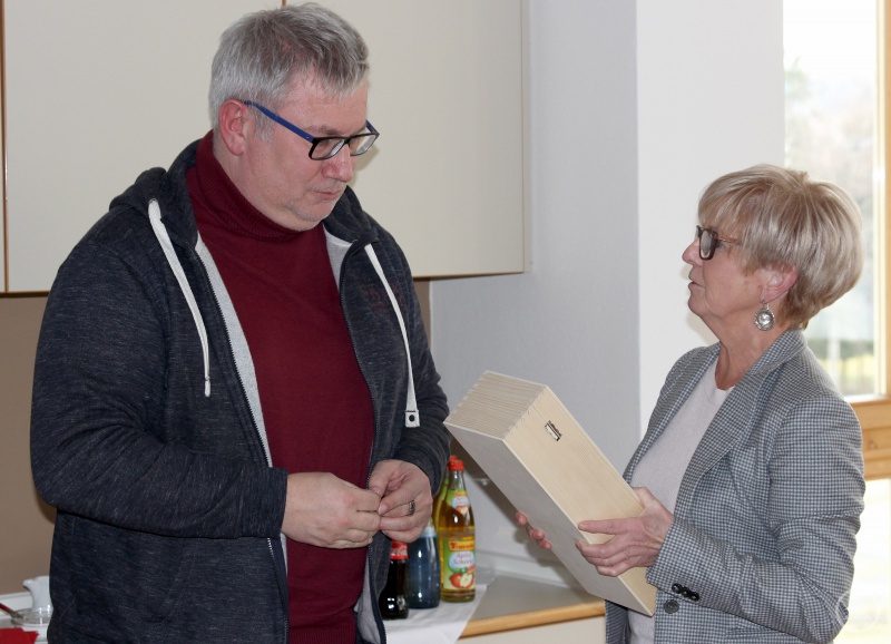 Mit einem Geschenk verabschiedete Landrätin Rita Röhrl den ehemaligen Kreisjugendringvorsitzenden Thomas Pfeffer.