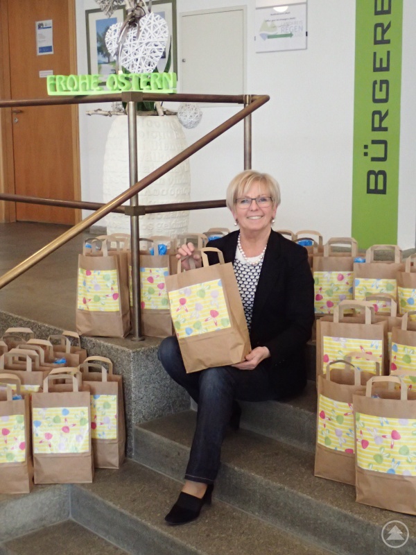Landrätin Rita Röhrl mit den Osterpäckchen für die Ehrenamtskarteninhaber.