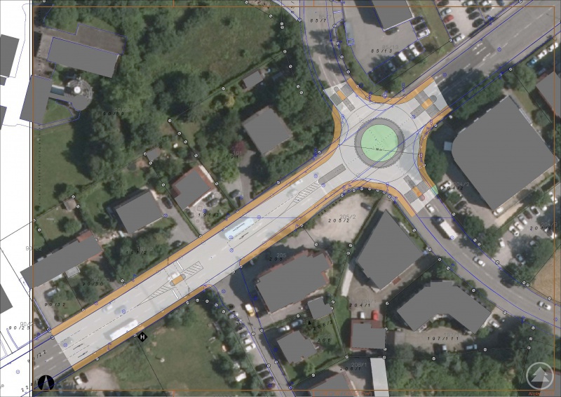 Der Kreisverkehr ist mit einem Durchmesser von 30 Metern vorgesehen und soll gleich im Endausbau ausgeführt werden und nicht als Provisorium. Die Baukosten werden auf grob 450.000 Euro geschätzt.