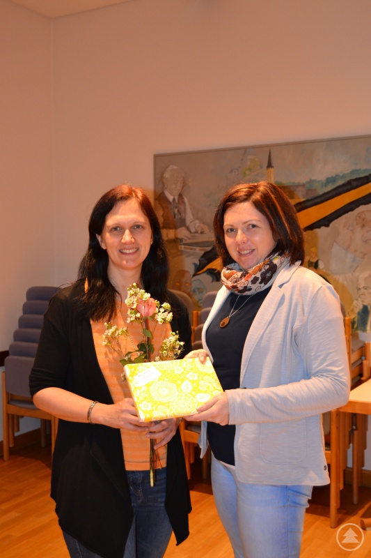 Sabine Eggersdorfer, Dipl.-Sozialpädagogin und Leitung der AIDS- Informations- und Beratungsstelle Niederbayern in Passau (li.), gemeinsam mit Katrin Greiner, Dipl.-Sozialpädagogin und Präventionsfachkraft des Landratsamtes Freyung-Grafenau, Abteilung Gesundheitswesen.