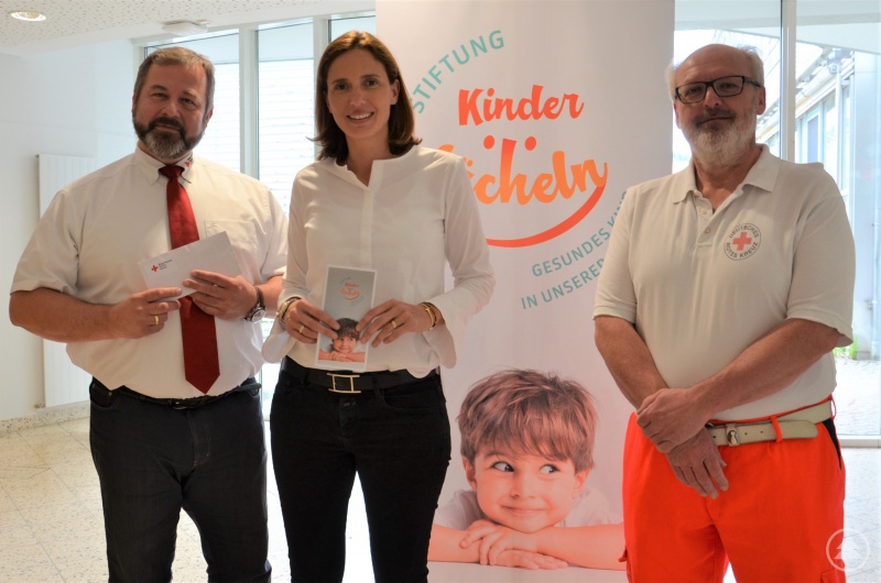 (v.l.). Michael Spitzenberger (BRK-Wachleiter der Rettungswache Tittling), Dr. Maria Diekmann (Vorstandsvorsitzende der Stiftung Kinderlächeln) und Herbert Reichmeier (Rettungswache Tittling).